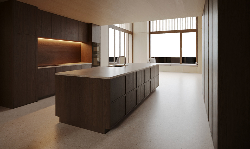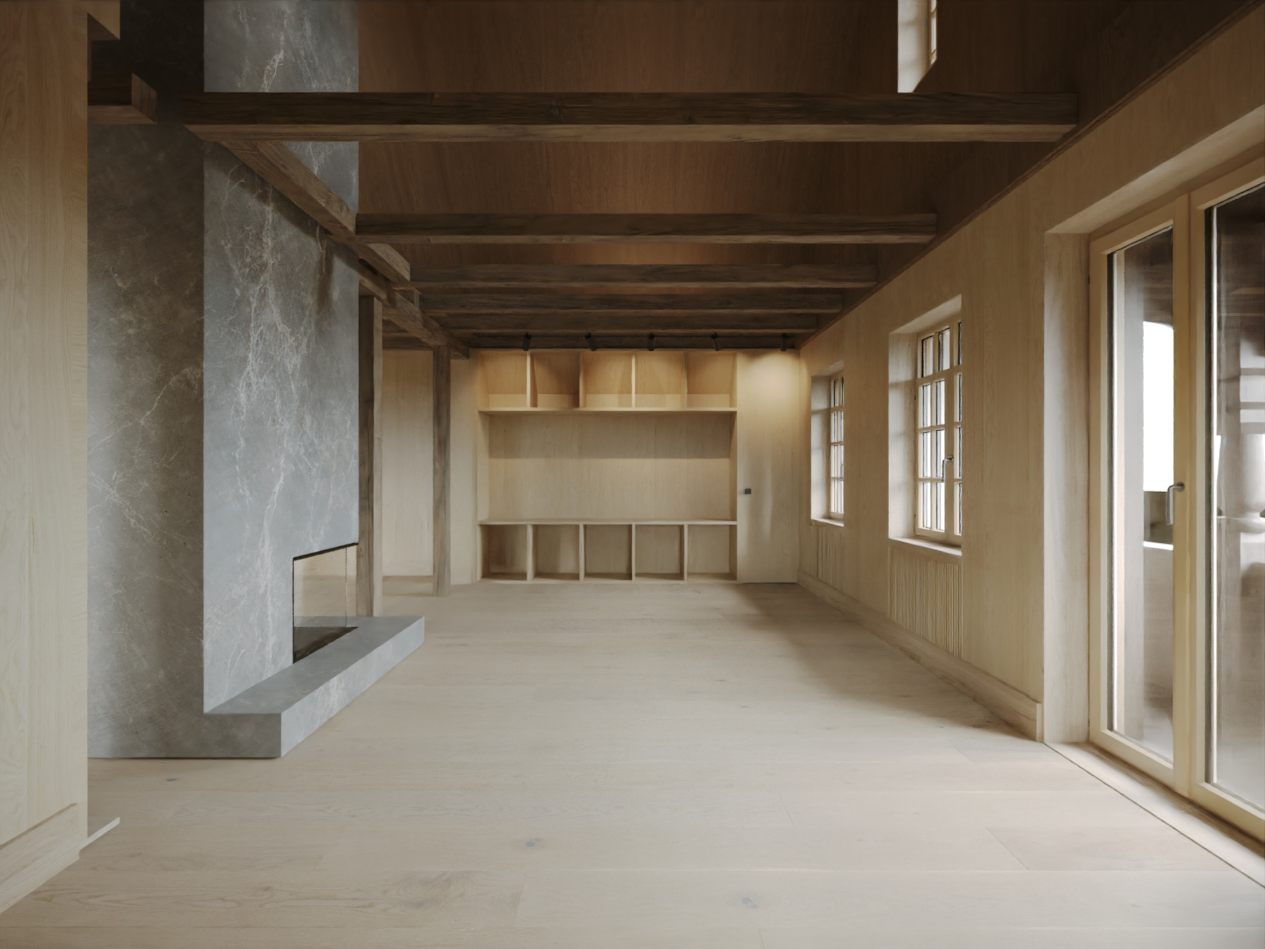 In Kombination mit den grosszügigen Räumen, entfalten erlesene Holz- und Steinmaterialien, wie die 3-Schicht Landhausdielen aus Eiche, Natursteinplatten aus «Quarzit» oder «Travertin» ihre volle Wirkung…